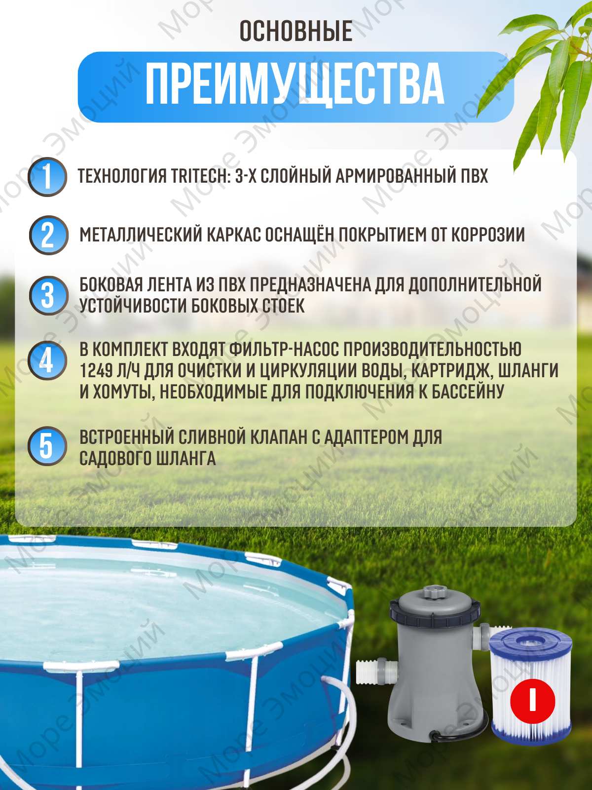 | В комплекте | скиммер / фильтр-насос / фильтр насос |