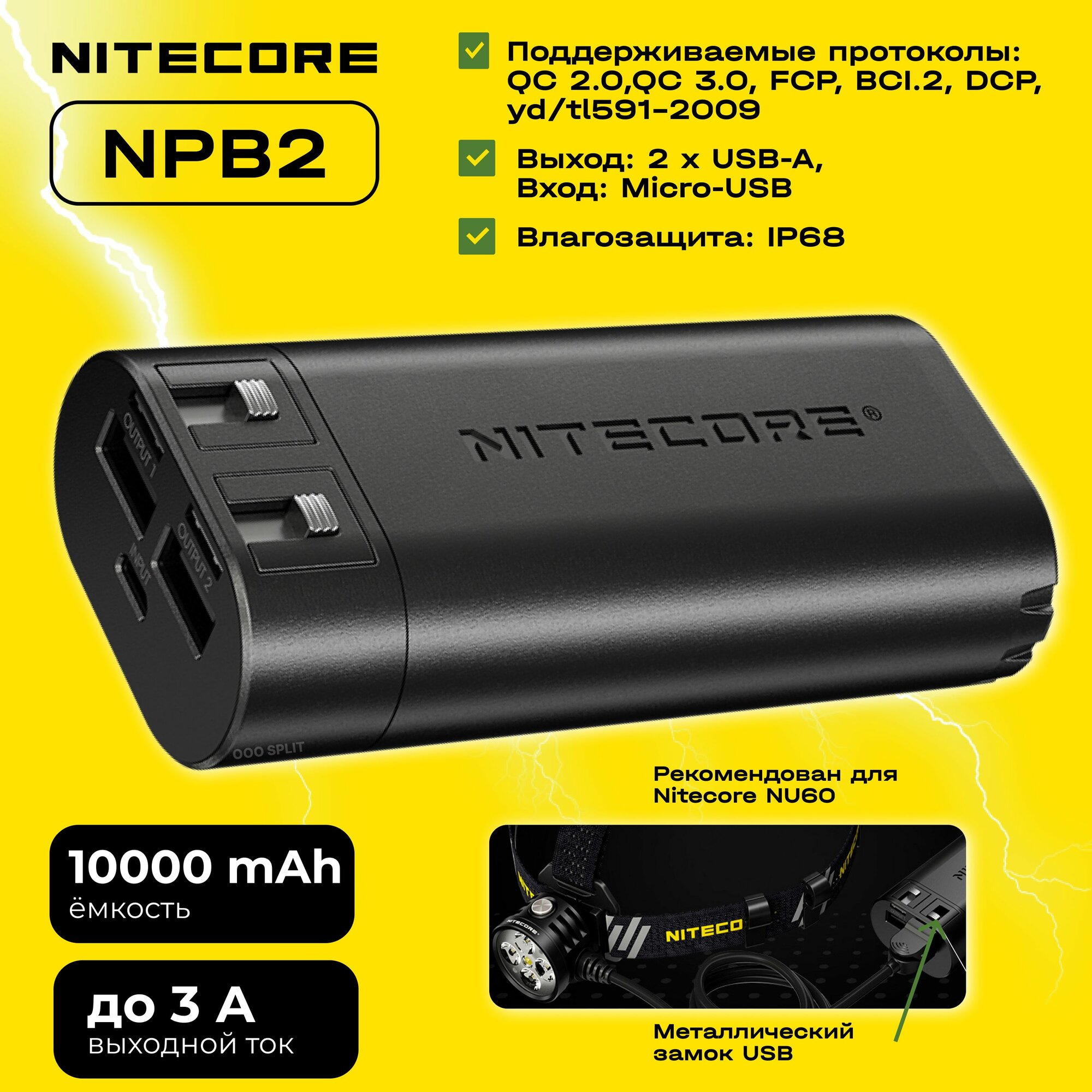 Nitecore Внешний аккумулятор NITECORE NPB2 IP68 Power Bank QC 3.0 18Вт, 10000mAh -10°C