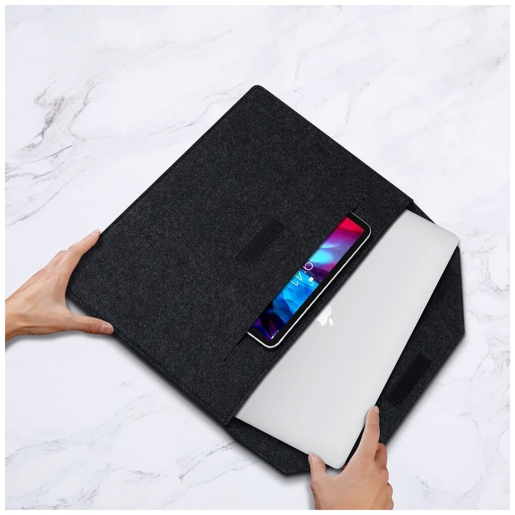 Купить Универсальный чехол-конверт войлочный с липучкой для ноутбука 15.6-16 дюймов, размер 40-28-1 см, черный