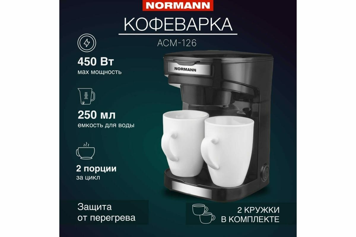 Кофеварка капельная NORMANN ACM-126 450 Вт; 250 мл;+2 кружки