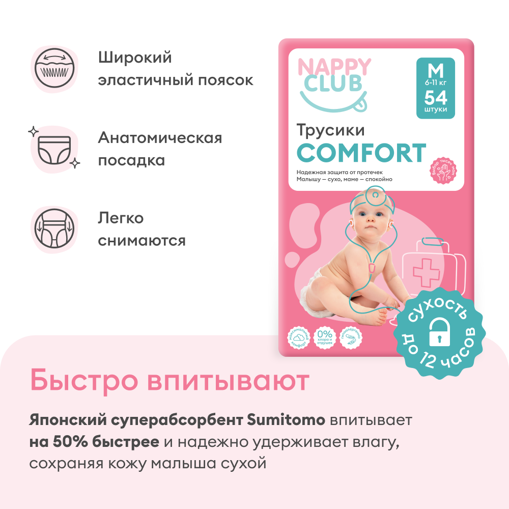 Купить Подгузники-трусики NappyClub Comfort M, 6-11 кг, 54 шт