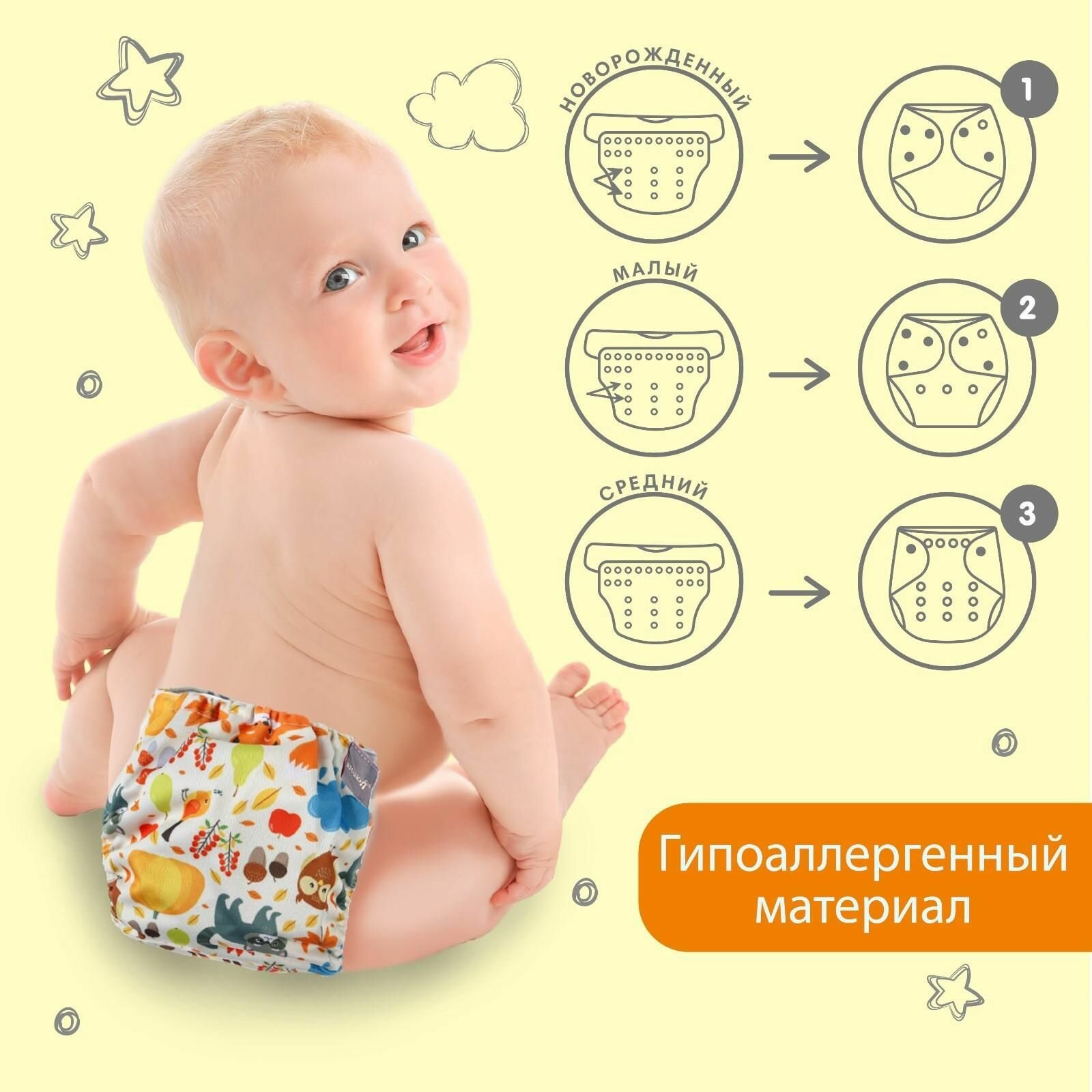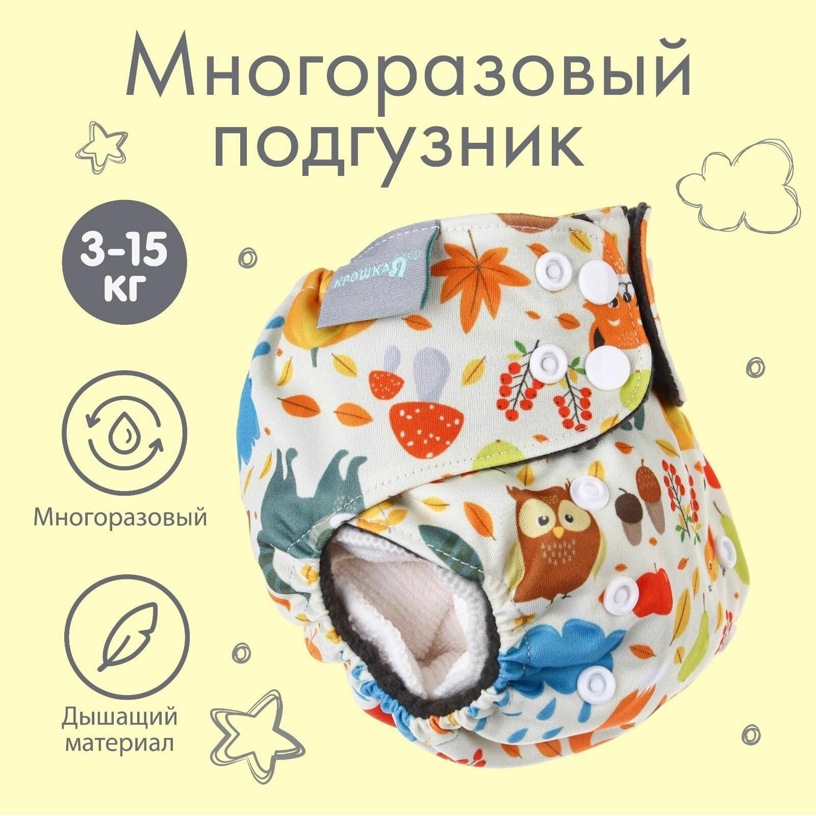 Трусики-подгузник, многоразовый, угольно-бамбуковая ткань, «Осень», от 0-12 мес. интересное: