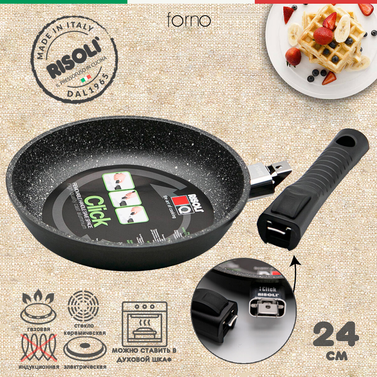 Сковорода "Risoli" Forno со съемной ручкой, диаметр 24 см интересное: