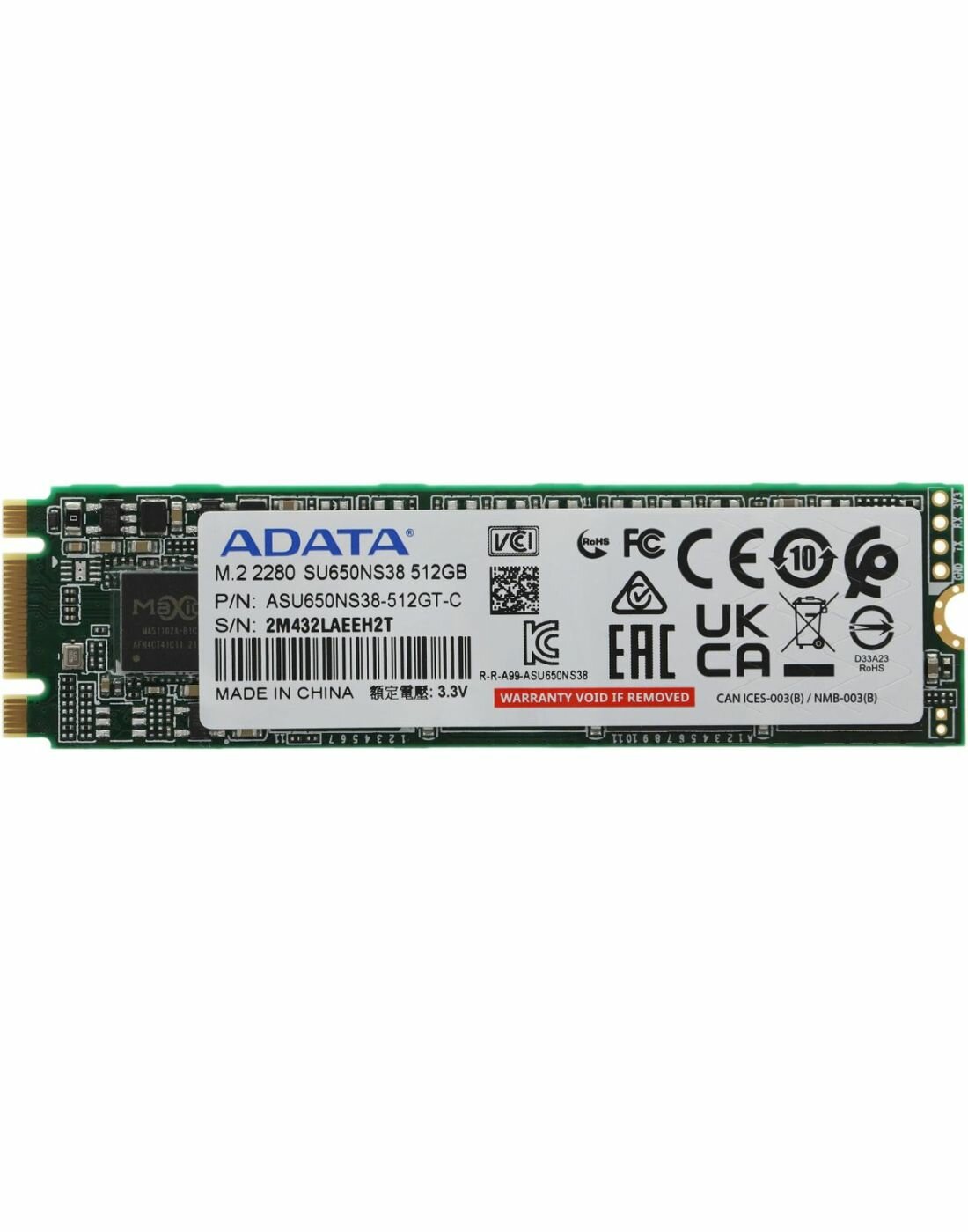 Накопитель SSD M.2 2280 ADATA ASU650NS38-512GT-C Ultimate SU650 512GB SATA 6GB/s TLC 550/510MB/s, IOPS 80K/60K, MTBF 2M