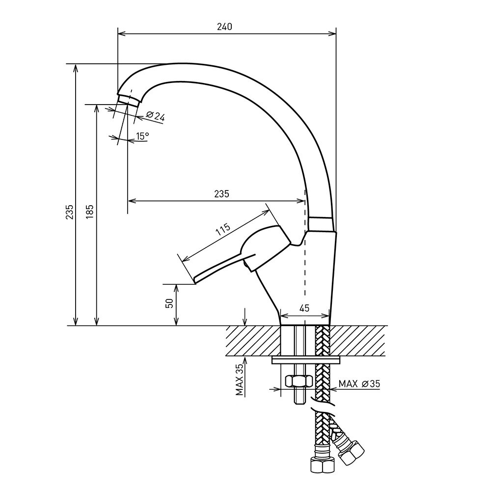 Купить Смеситель для кухни Corsa Deco Stream хром с высоким изливом однорычажный (672180)