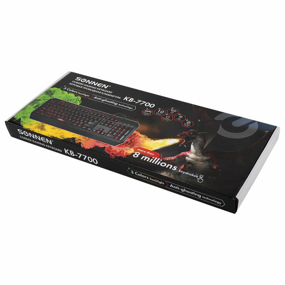Купить Клавиатура проводная игровая SONNEN KB-7700, USB, 104 клавиши + 10 программируемых клавиш, RGB, черная, 513512