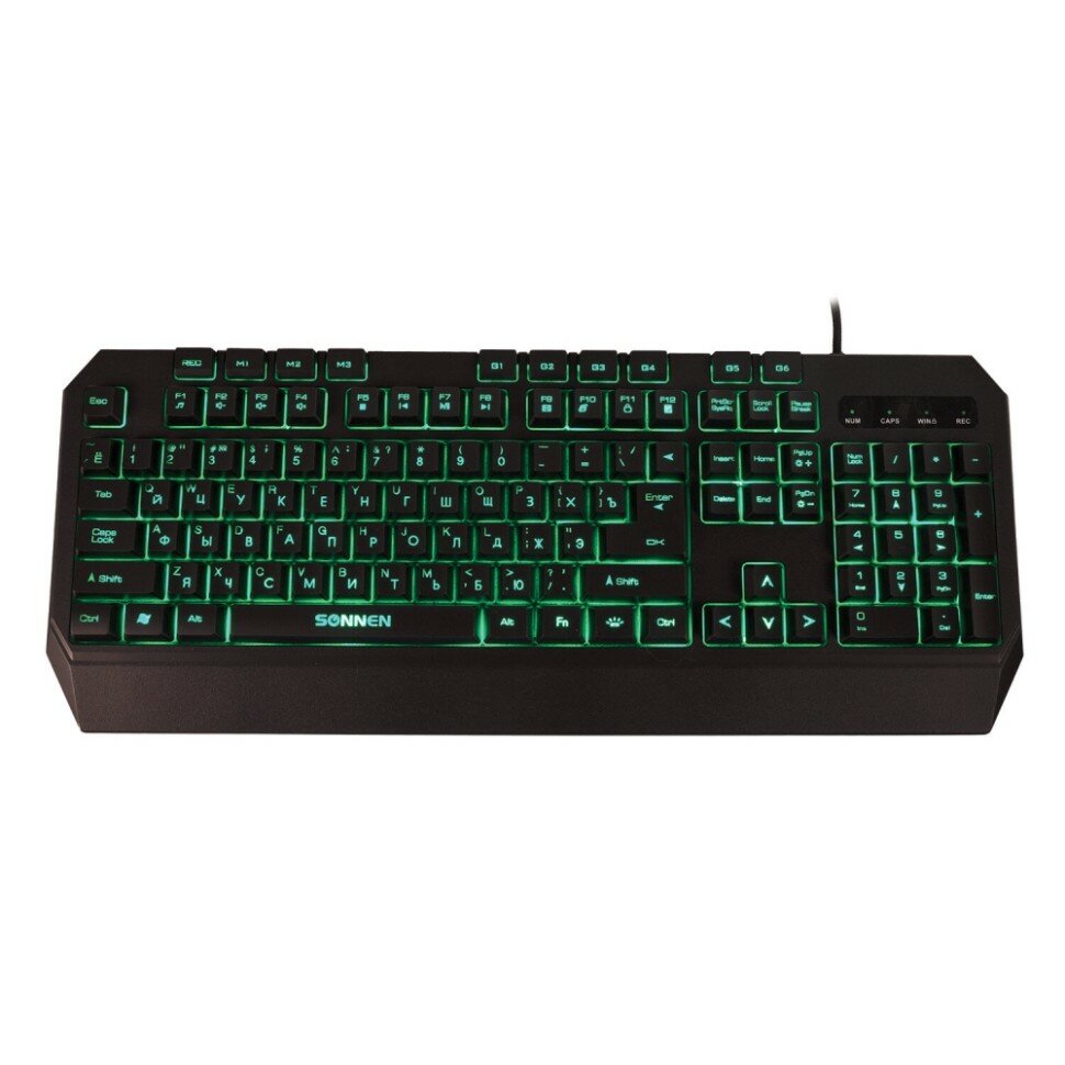 Клавиатура проводная игровая SONNEN KB-7700, USB, 104 клавиши + 10 программируемых клавиш, RGB, черная, 513512, 513512