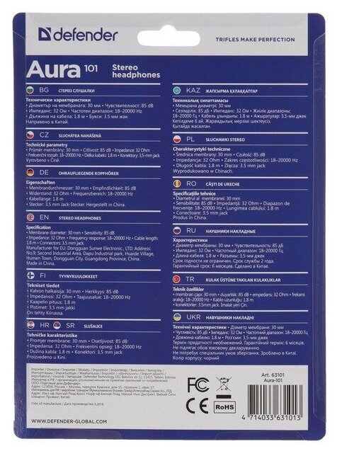 Купить Наушники 101, накладные, 85 дБ, 32 Ом, 3.5 мм, 1.8 м, черный