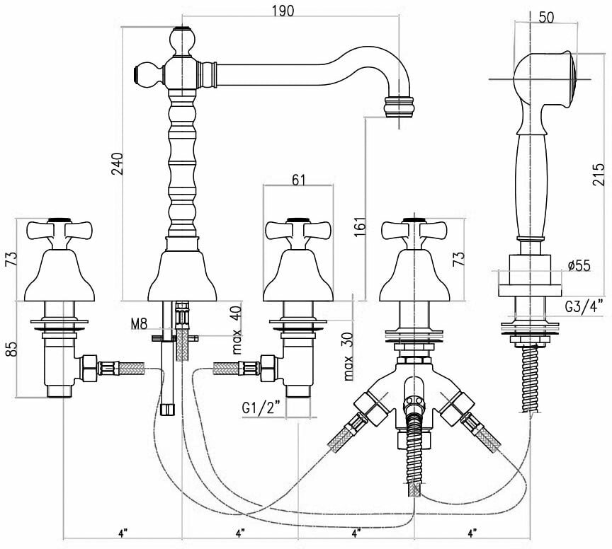 Душевая система Jaquar JPL-SSF-ST88158B нержавеющая сталь