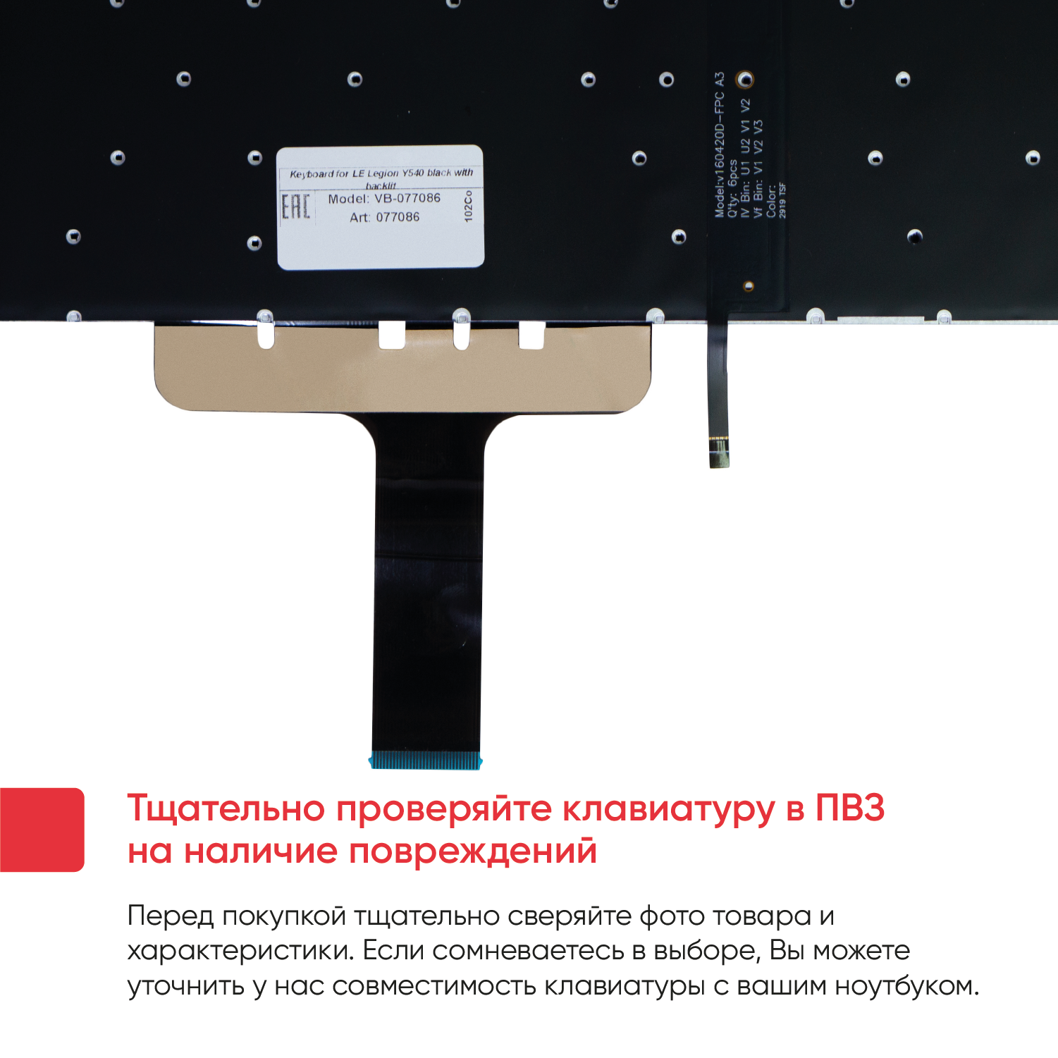 Клавиатура (keyboard) PP5YBG для ноутбука Lenovo Legion Y540, Y540-15IRH, Y545-15ICH, Y545-15ICH, Y540-17IRH, черная с белой подсветкой интересное: