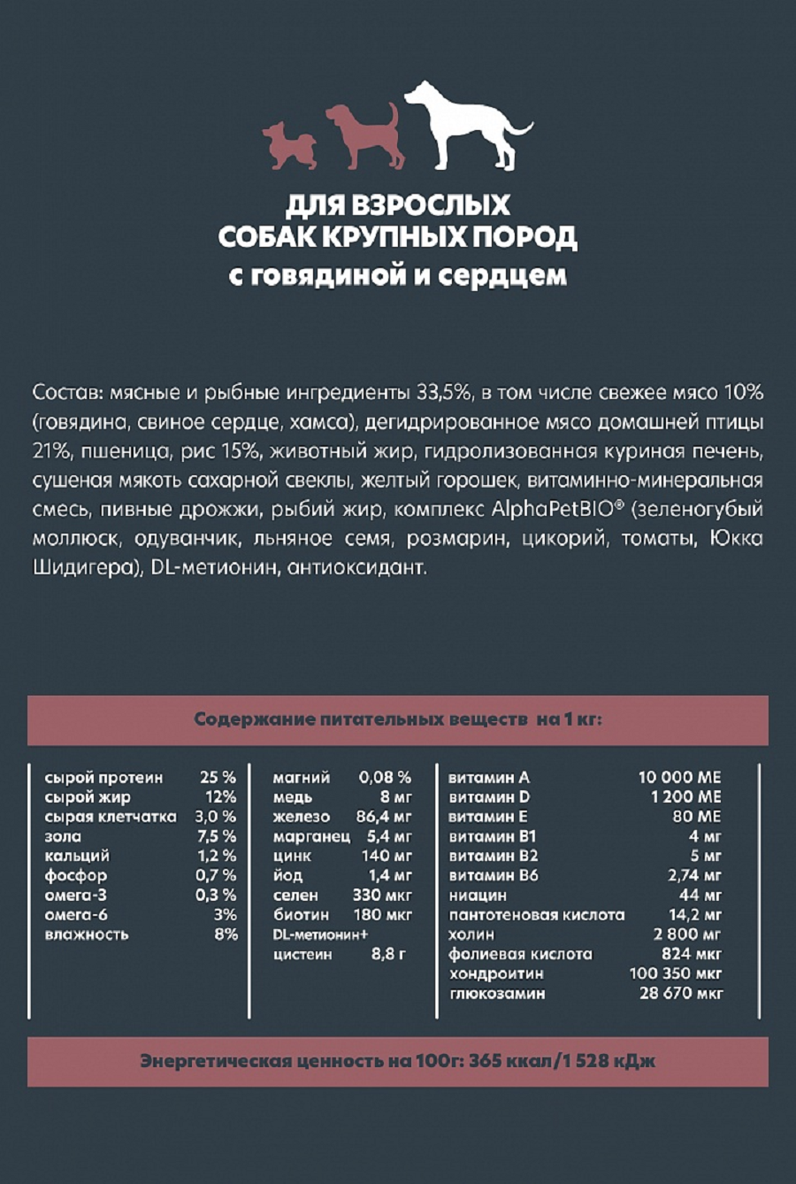 СохранитьСухой полнорационный корм с говядиной и сердцем для взрослых собак крупных пород AlphaPet WOW Superpremium 15 кг интересное: