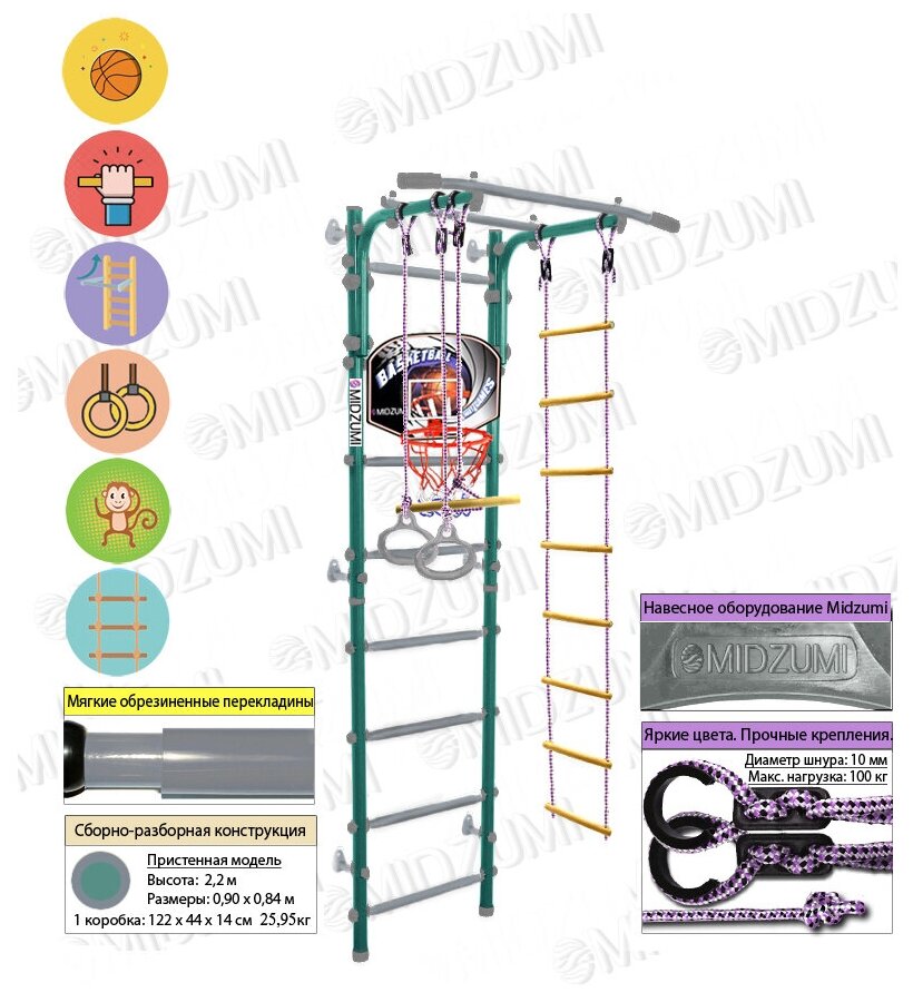 Шведская стенка Midzumi Banji Kabe Basketball Shield, ментоловый сорбет интересное: