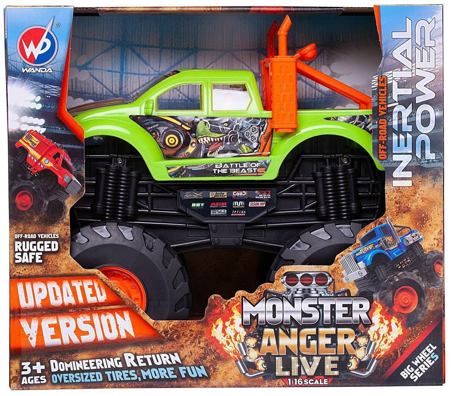 Машинка Джип-внедорожник 4х4 Гнев монстра, 1:16, зелено-оранжевая - Junfa Toys [WC-11589/зелено-оранжевая]