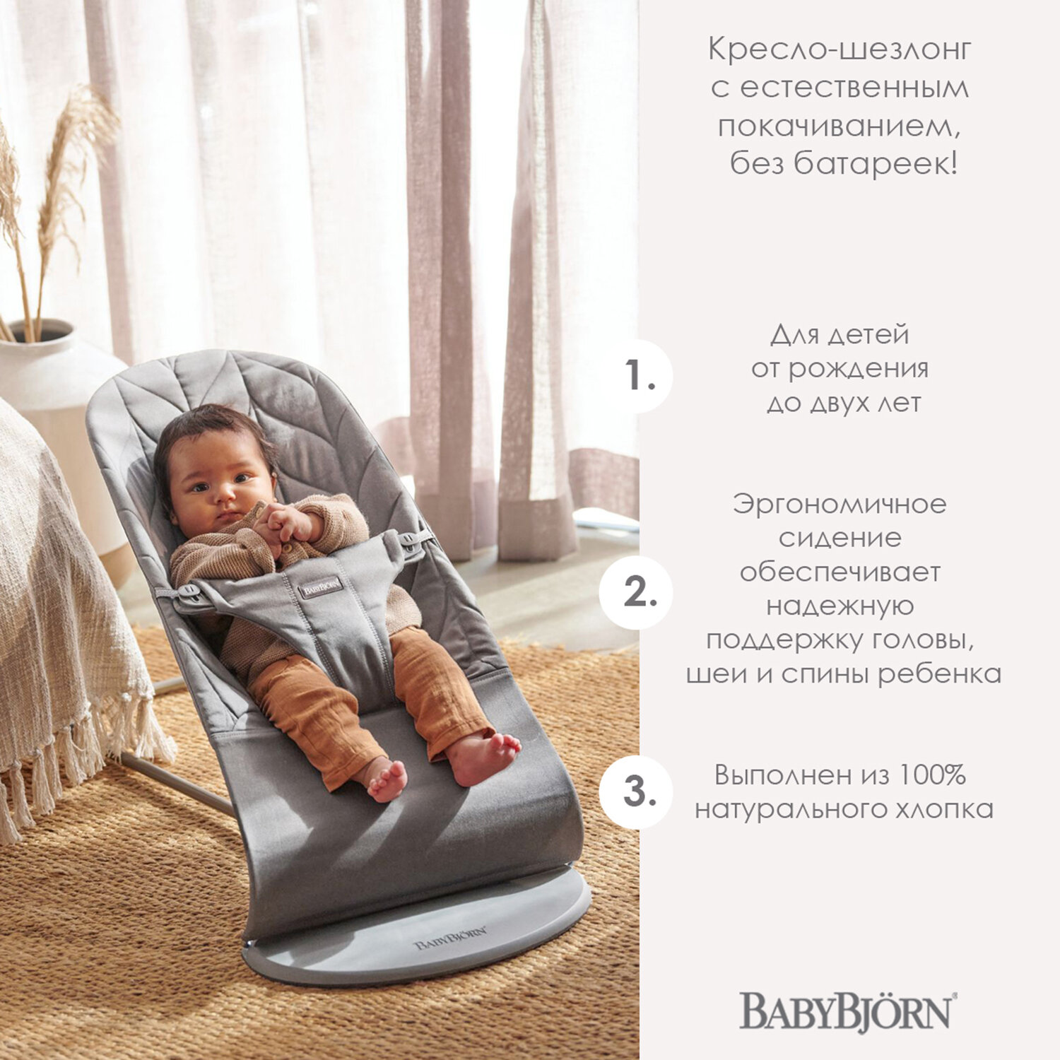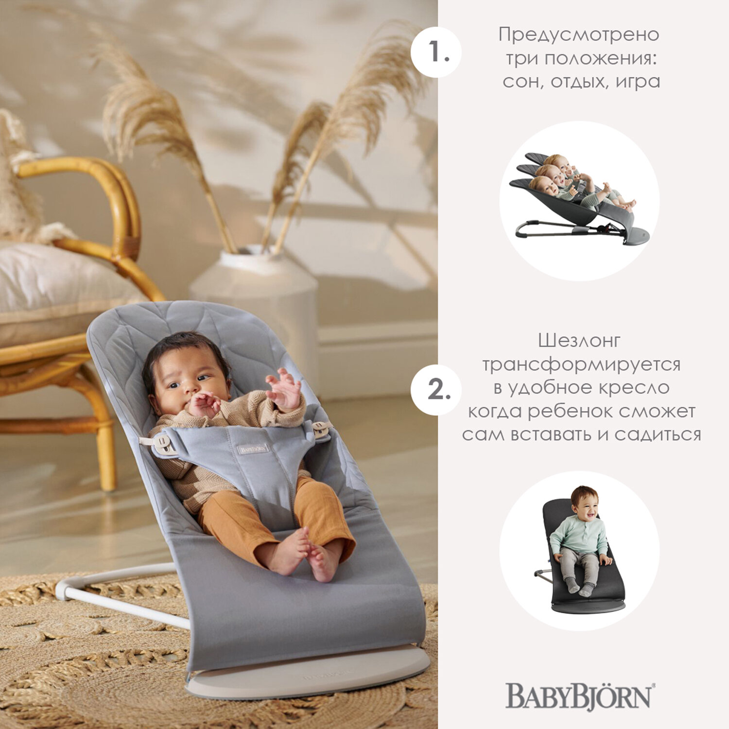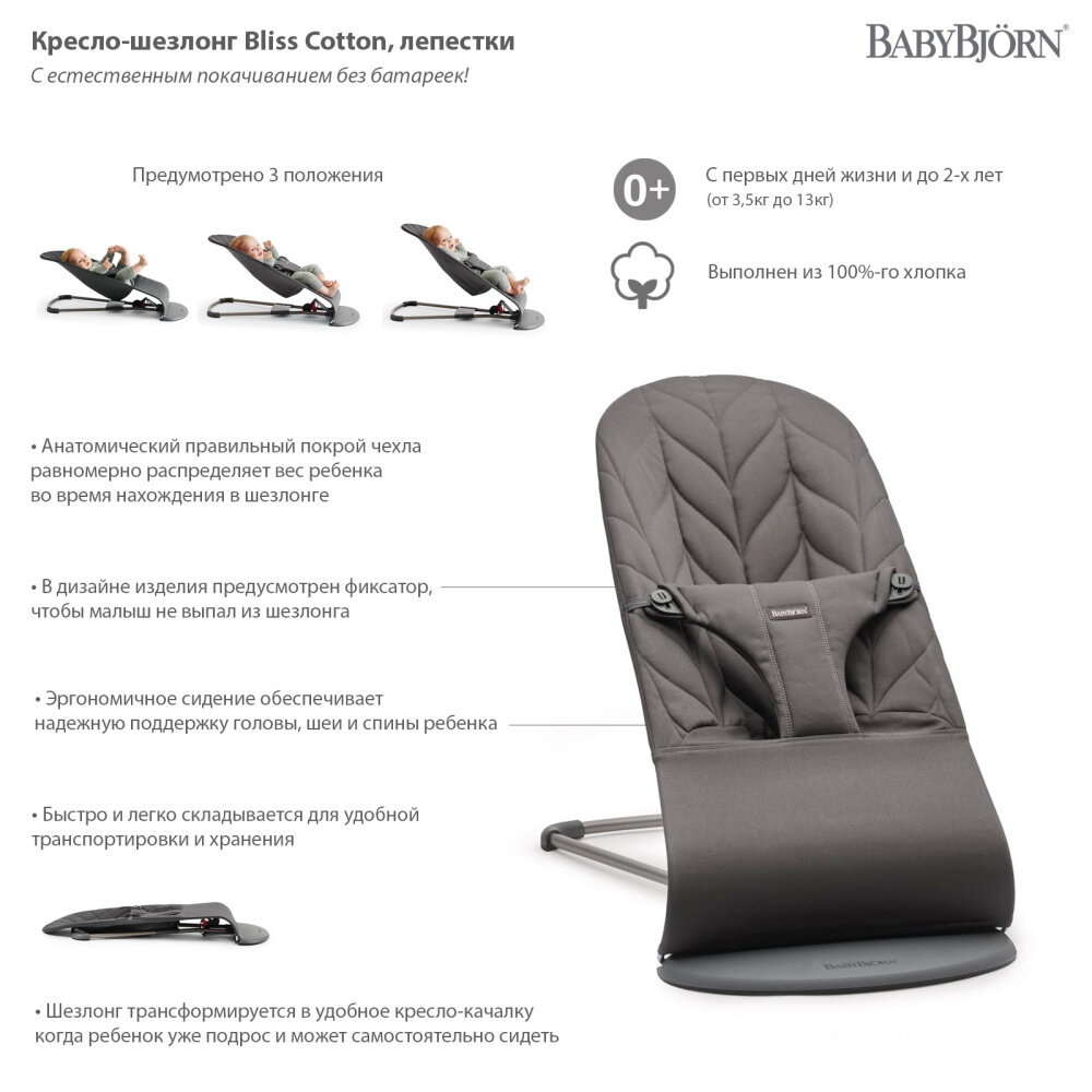 СохранитьКресло-шезлонг BabyBjorn Bliss Anthracite, лепесток, темно-серый интересное: