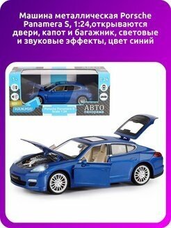 Модель машины Автопанорама 1:24 Porsche Panamera S, синий, открываются двери, капот, багажник, свет, звук