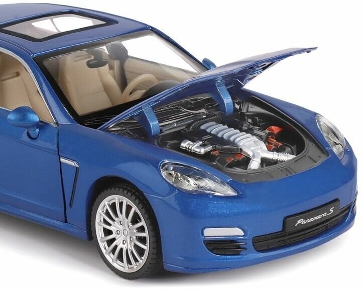 Машина металлическая Porsche Panamera S, 1:24,открываются двери, капот и багажник, световые и звуковые эффекты, цвет синий