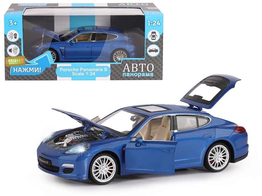Модель машины Автопанорама 1:24 Porsche Panamera S, синий, открываются двери, капот, багажник, свет, звук (JB1200117)