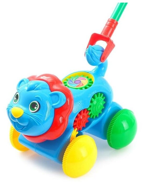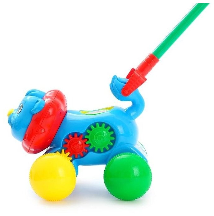 Купить Каталка на палочке "львенок", крутятся шестеренки, палочка светится, звук. эффекты, размер львенка: