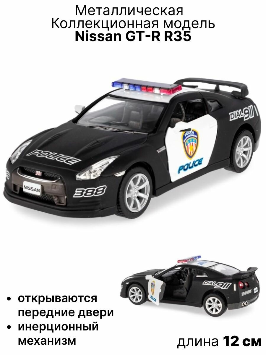 Металлическая машинка игрушка 1:36 2009 Nissan GT-R R35 (Ниссан ГТР) Полицейская 13 см., инерционная интересное:
