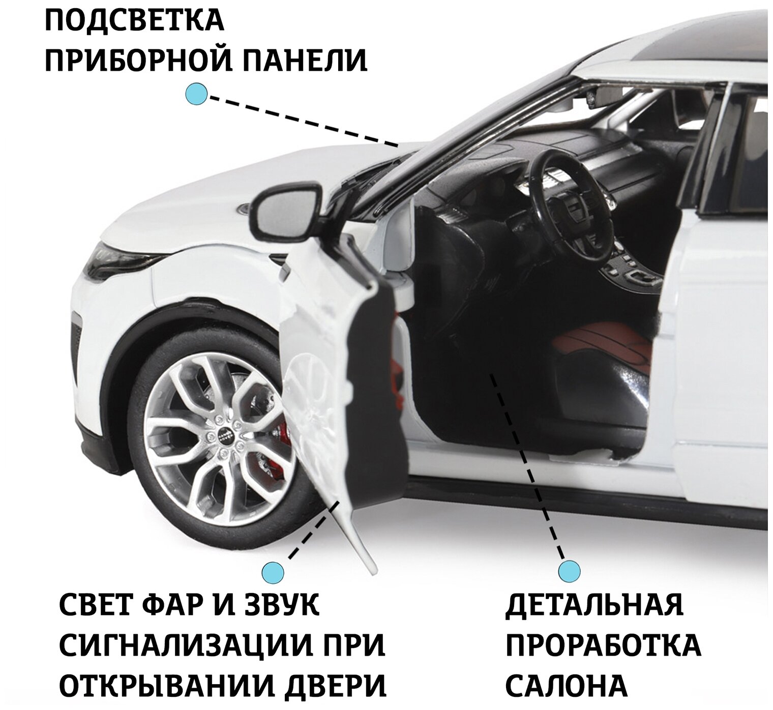 Модель машины Автопанорама 1:24 Land Rover Range Rover Evoque HSE 2017, белый, открываются двери и капот, свет, звук