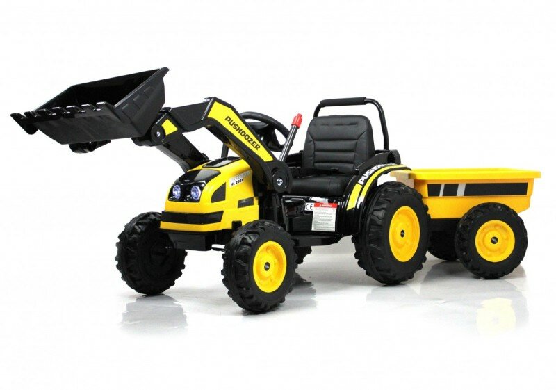 Купить Детский электромобиль RiverToys трактор-погрузчик с прицепом HL395 жёлтый