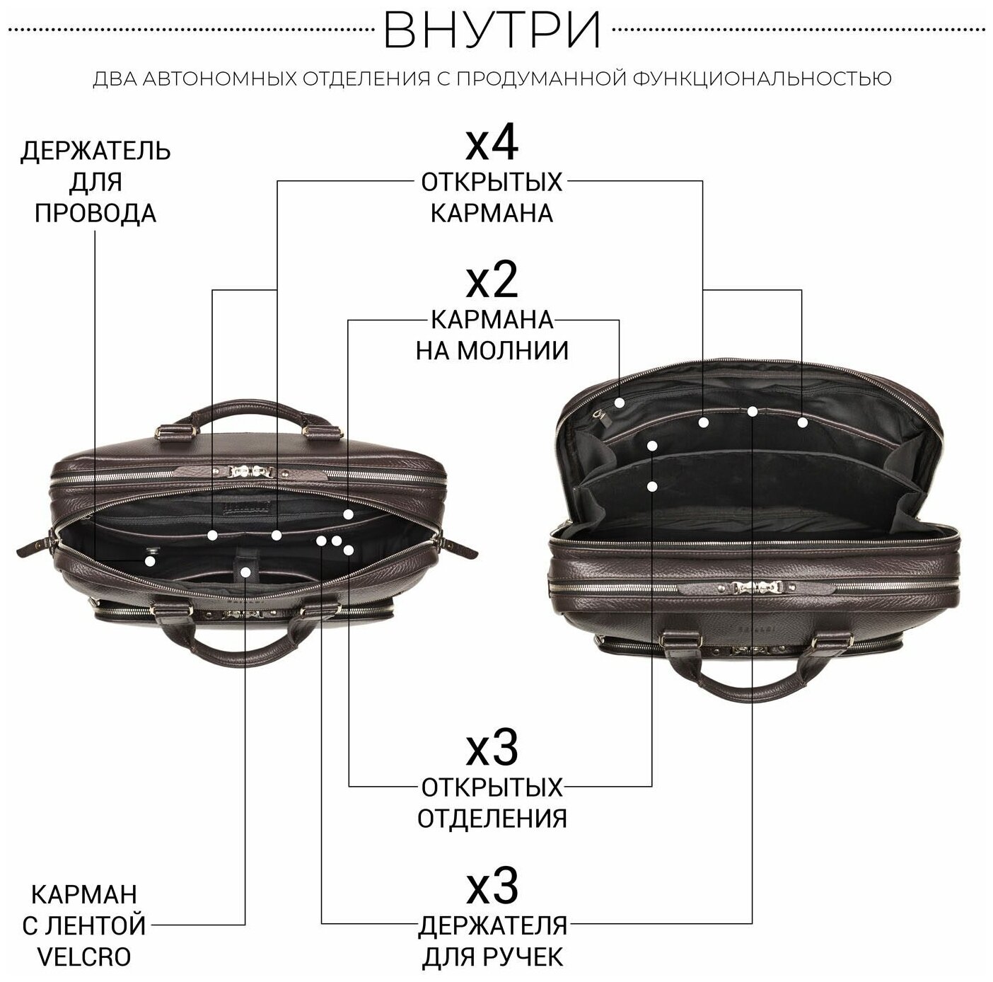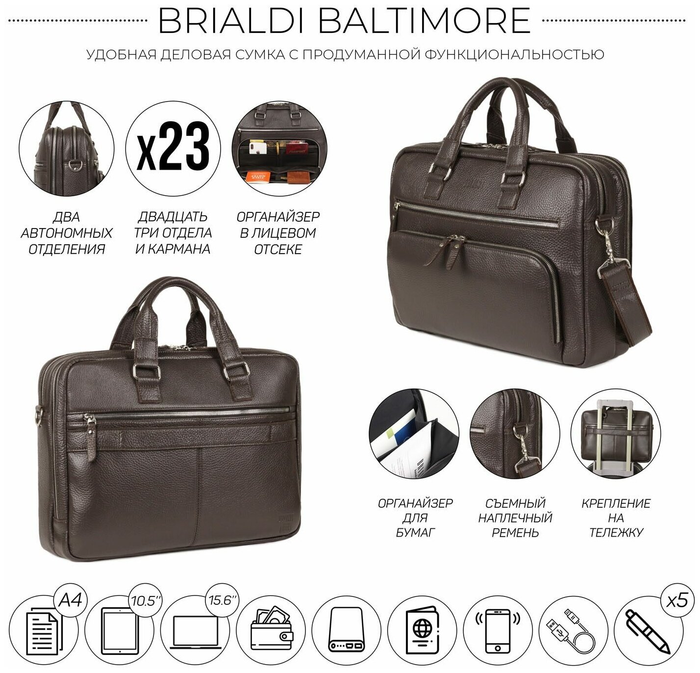 Сумка мужская деловая Brialdi Baltimore relief brown (коричневая) для формата A4 или ноутбука 15,6 дюймов из натуральной кожи интересное: