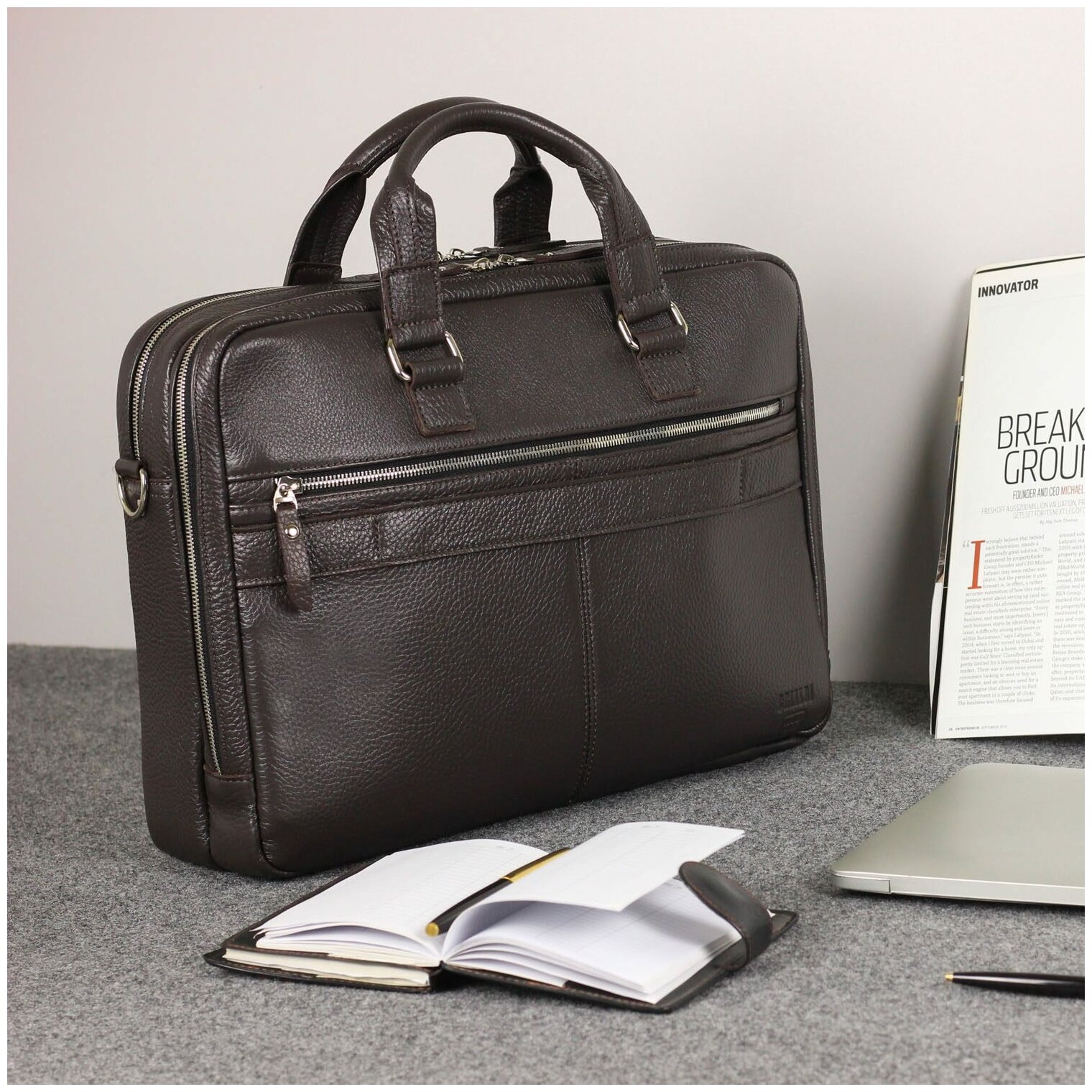 Купить Сумка мужская деловая Brialdi Baltimore relief brown (коричневая) для формата A4 или ноутбука 15,6 дюймов из натуральной кожи