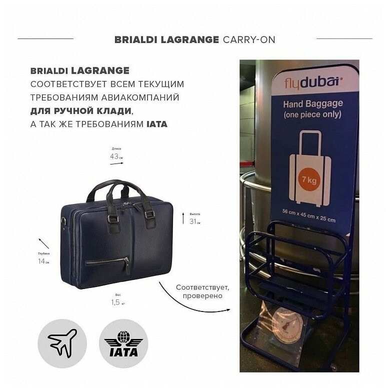Сумка мужская деловая для командировок Brialdi Lagrange relief navy (синяя) для формата A4 или ноутбука 15,6 дюймов из натуральной кожи интересное: