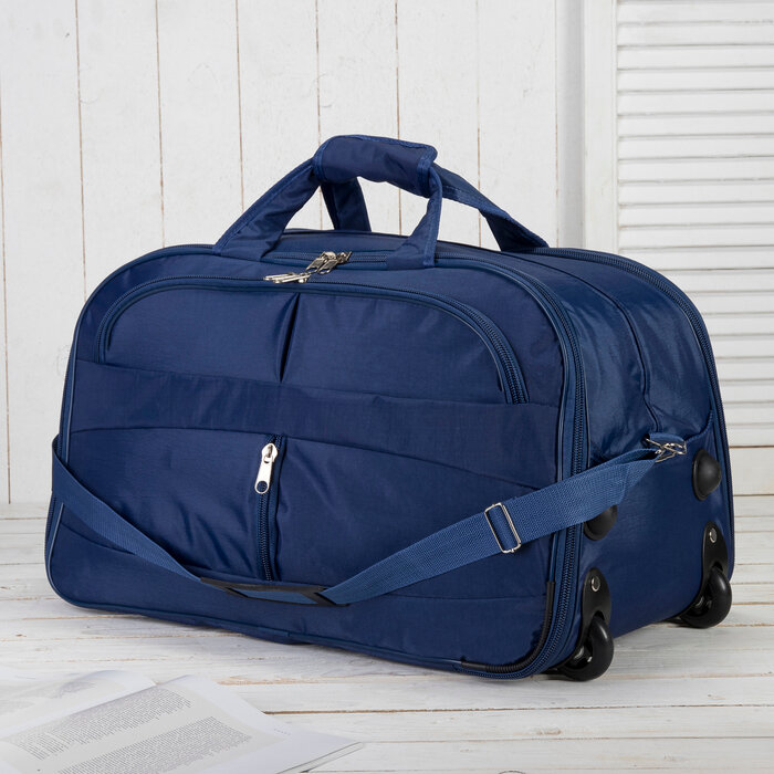 Купить Зфтс Сумка дорожная на колёсах, 2 отдела на молниях, 2 наружных кармана, длинный ремень, цвет синий
