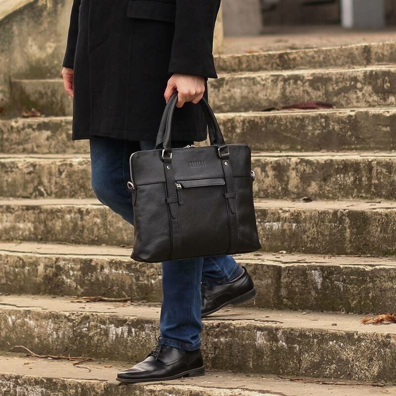Мужская деловая сумка SLIM-формата для документов BRIALDI Hamilton (Гамильтон) relief black интересное: