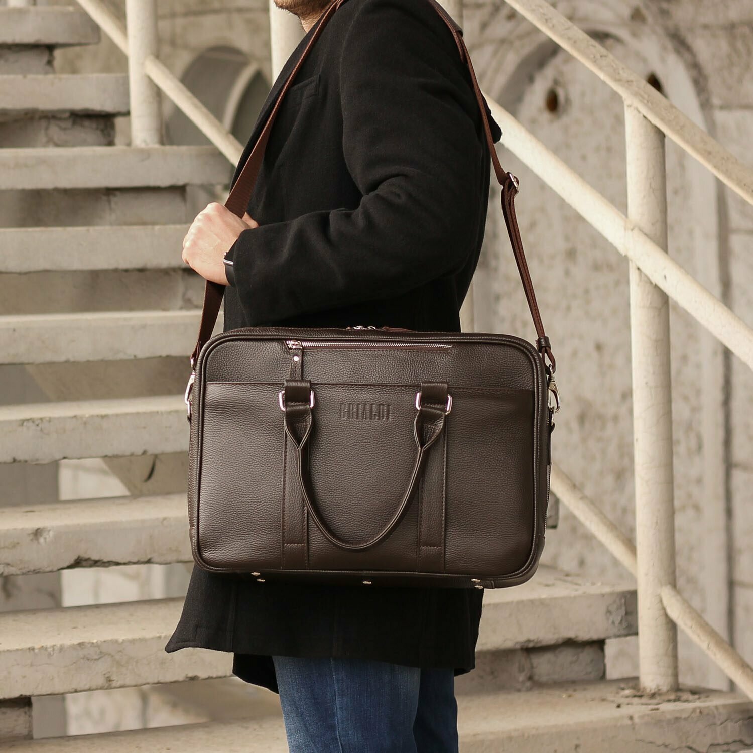 Вместительная деловая сумка с 2 отделениями BRIALDI Longstock (Лонгсток) relief brown интересное: