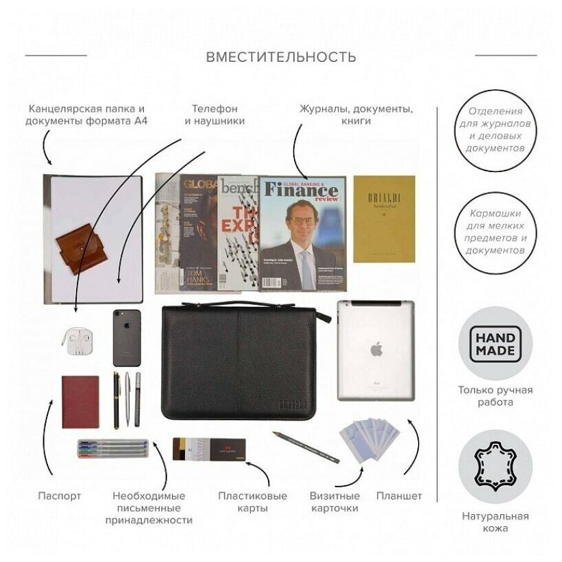 Деловая папка для документов BRIALDI Ravello (Равелло) relief black интересное: