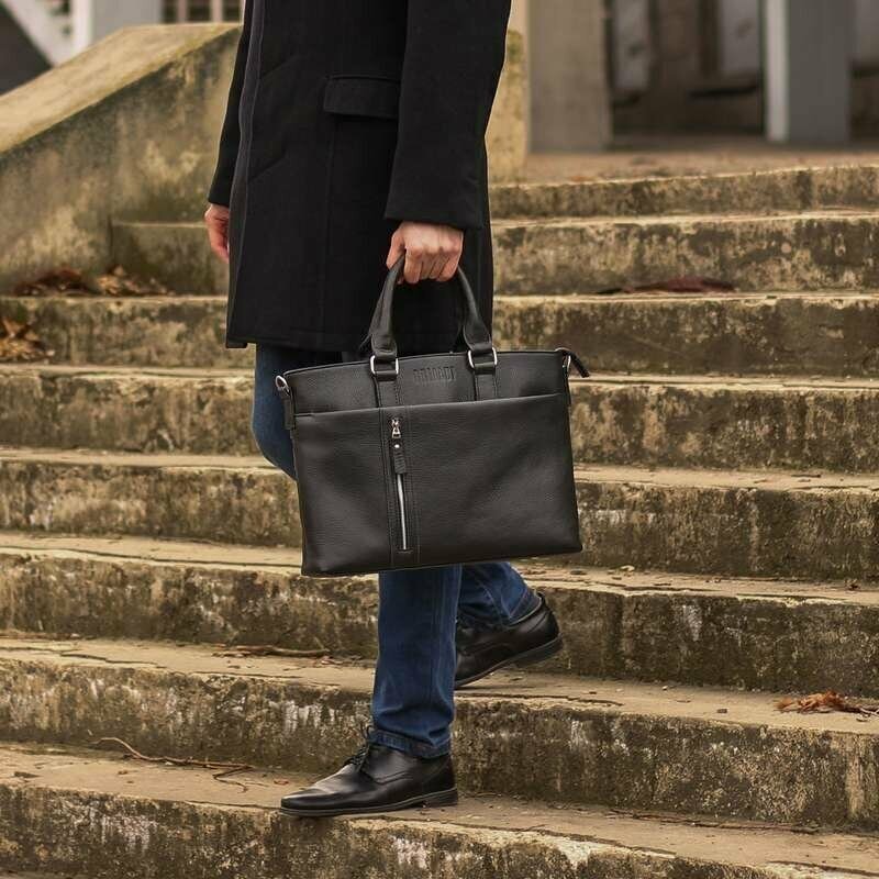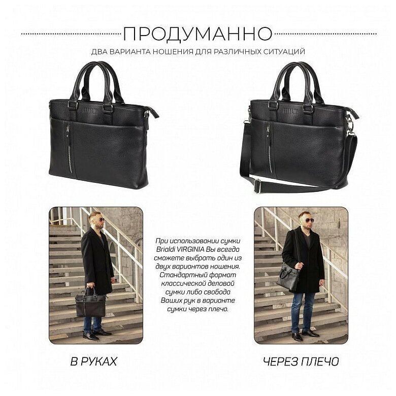 Функциональная мужская деловая сумка BRIALDI Virginia (Вирджиния) relief black интересное: