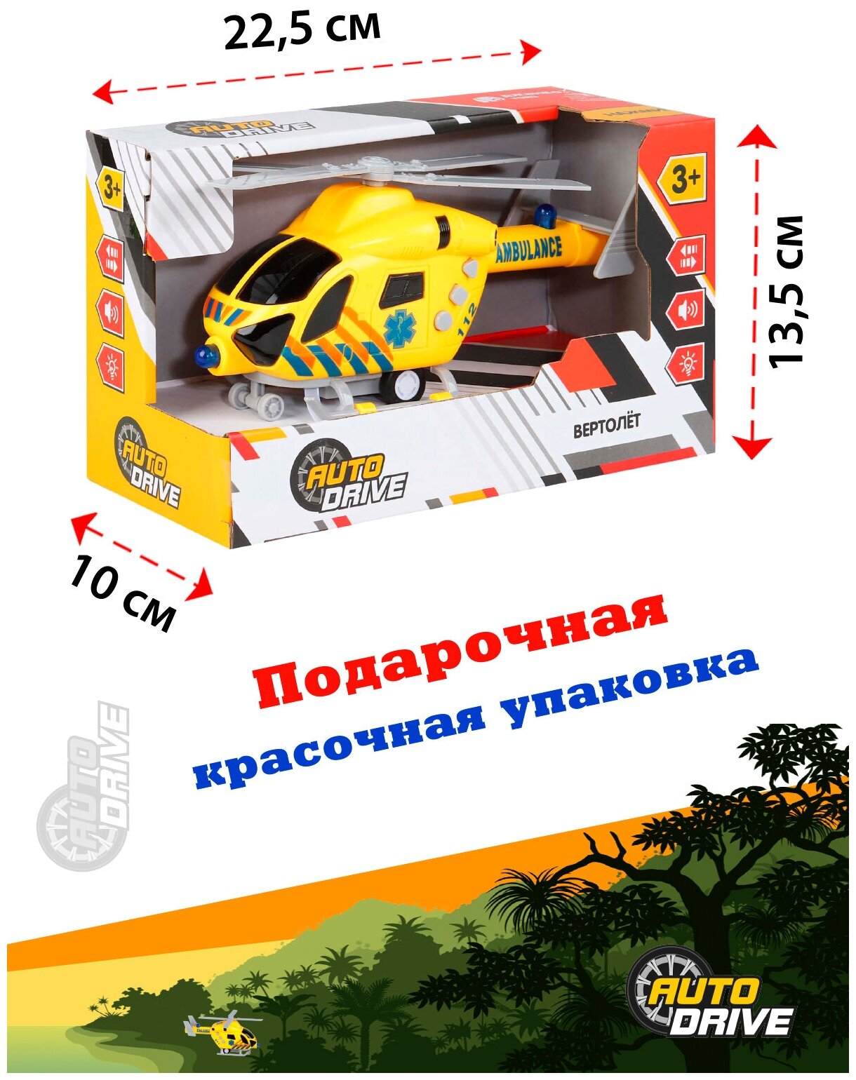 Вертолет AUTODRIVE 20см инерц. на бат. со светом и звуком, желтый, в/к 22,5 10 13,5 JB1167963 интересное: