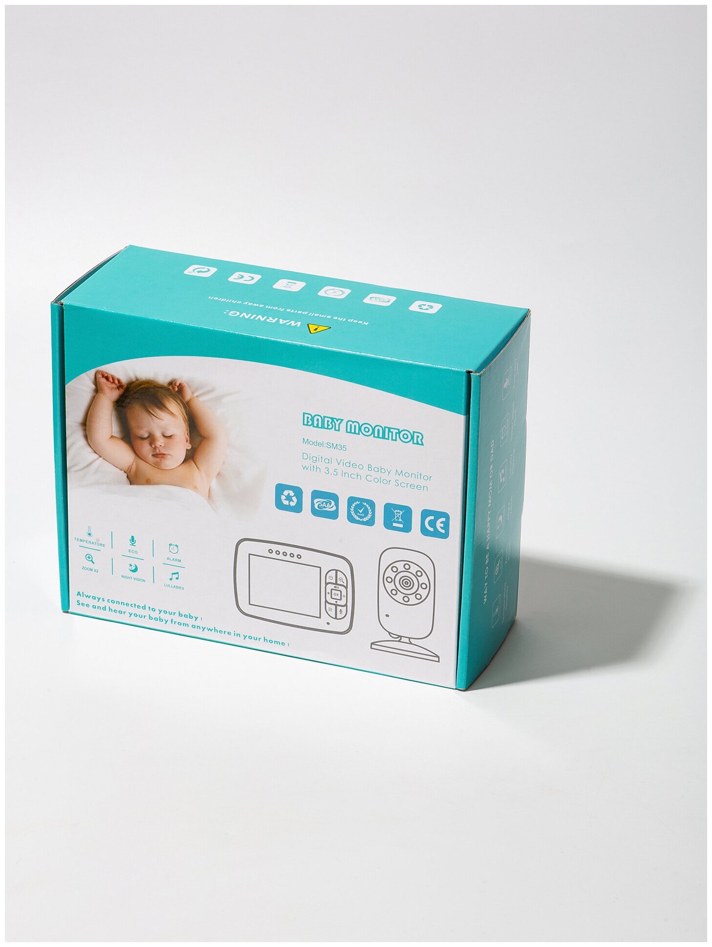 | Особенности | голосовая активация (VOX), датчик влажности, двусторонняя голосовая связь, колыбельные мелодии, подвижная камера, работа от сети 220 В, термометр, функция ночного видения |