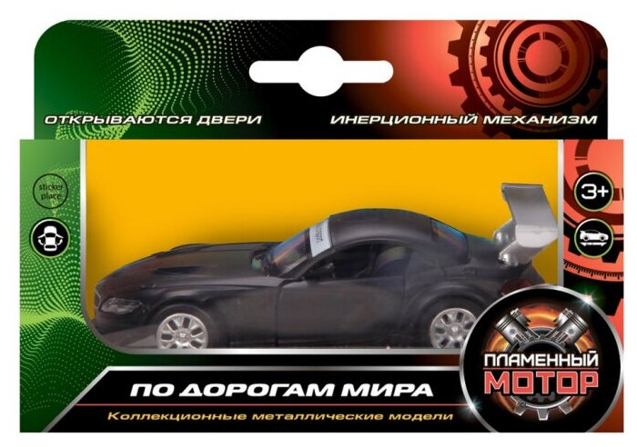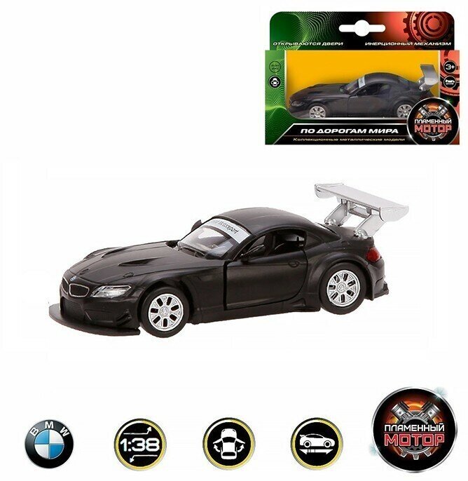 Машина Пламенный мотор металлическая, 1:38 BMW Z4 GT3, открываются двери, 10 см, черный матовый (870297)