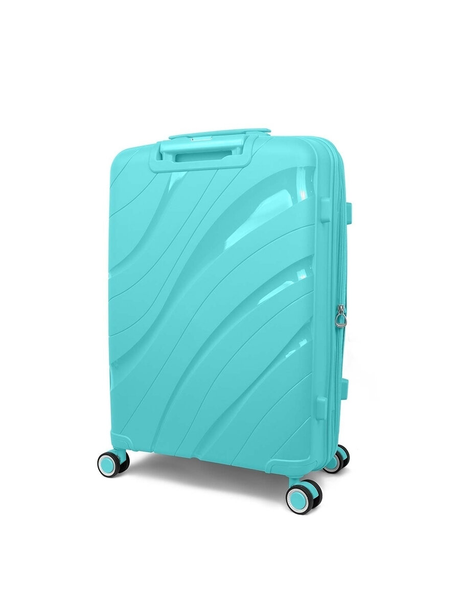 Чемодан на колесах дорожный ручная кладь в самолет s TEVIN размер С маленький мужской 55 см ручной 37 л cabin легкий полипропилен Зеленый волна
