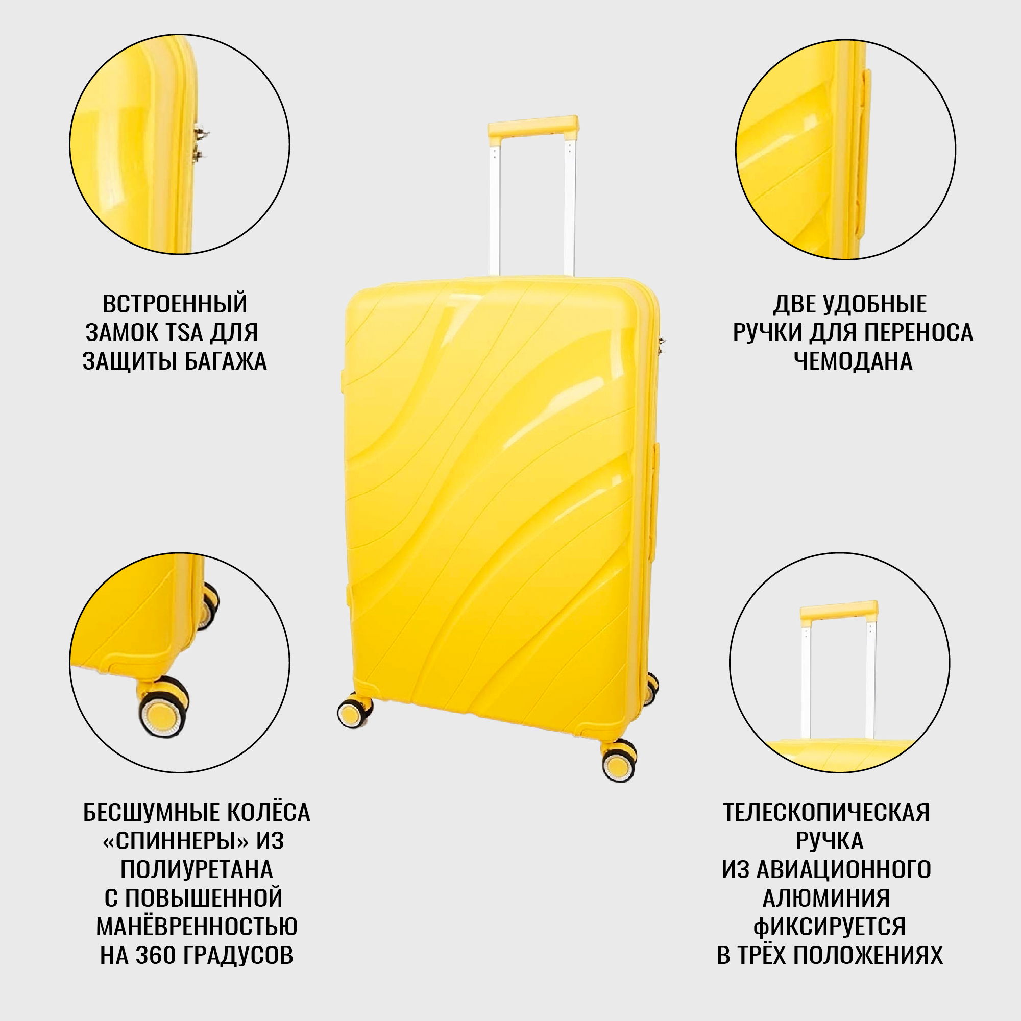 Купить Чемодан на колесах дорожный ручная кладь в самолет s TEVIN размер С маленький женский 55 см ручной 37 л cabin 21" легкий полипропилен Желтый волна