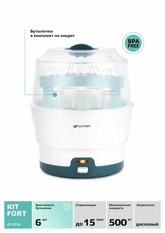 Просмотрев кучу отзывов на популярные модели выбор пал на Kitfort KT-2315. Не разу не пожалели. Красивый, стильный, очень прост в управлении. Налил водички, закинул все что нужно, включил и а-ля, все готово. В комплекте удобные щипцы, чтобы доставать бутылочки. И конечно очень радует цена. Спасибо производителю. |