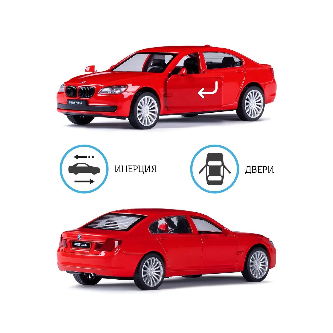 Машинка металлическая ТМ "Автопанорама" 1:46 BMW 760 LI, красный, инерция, открывающиеся двери