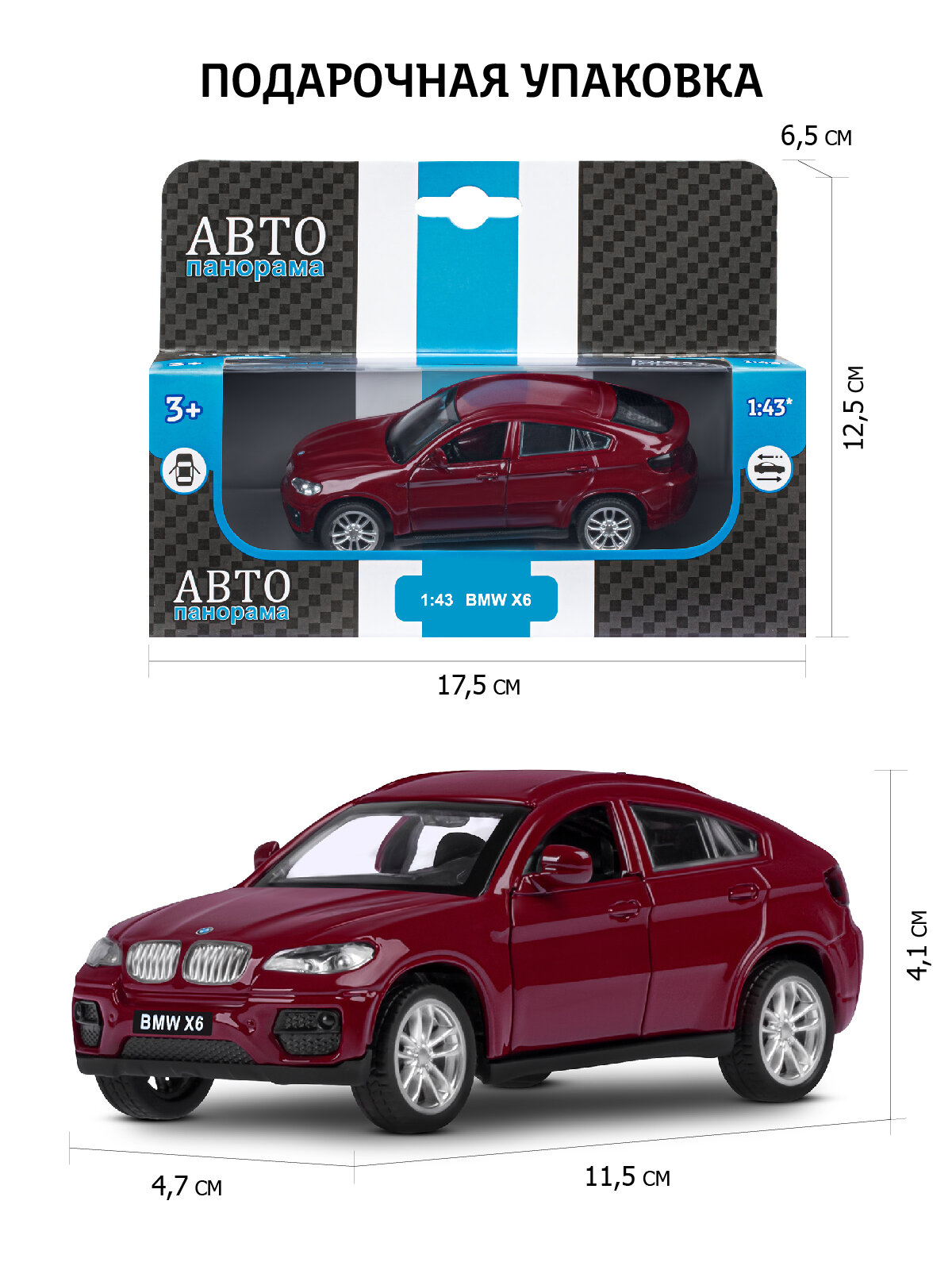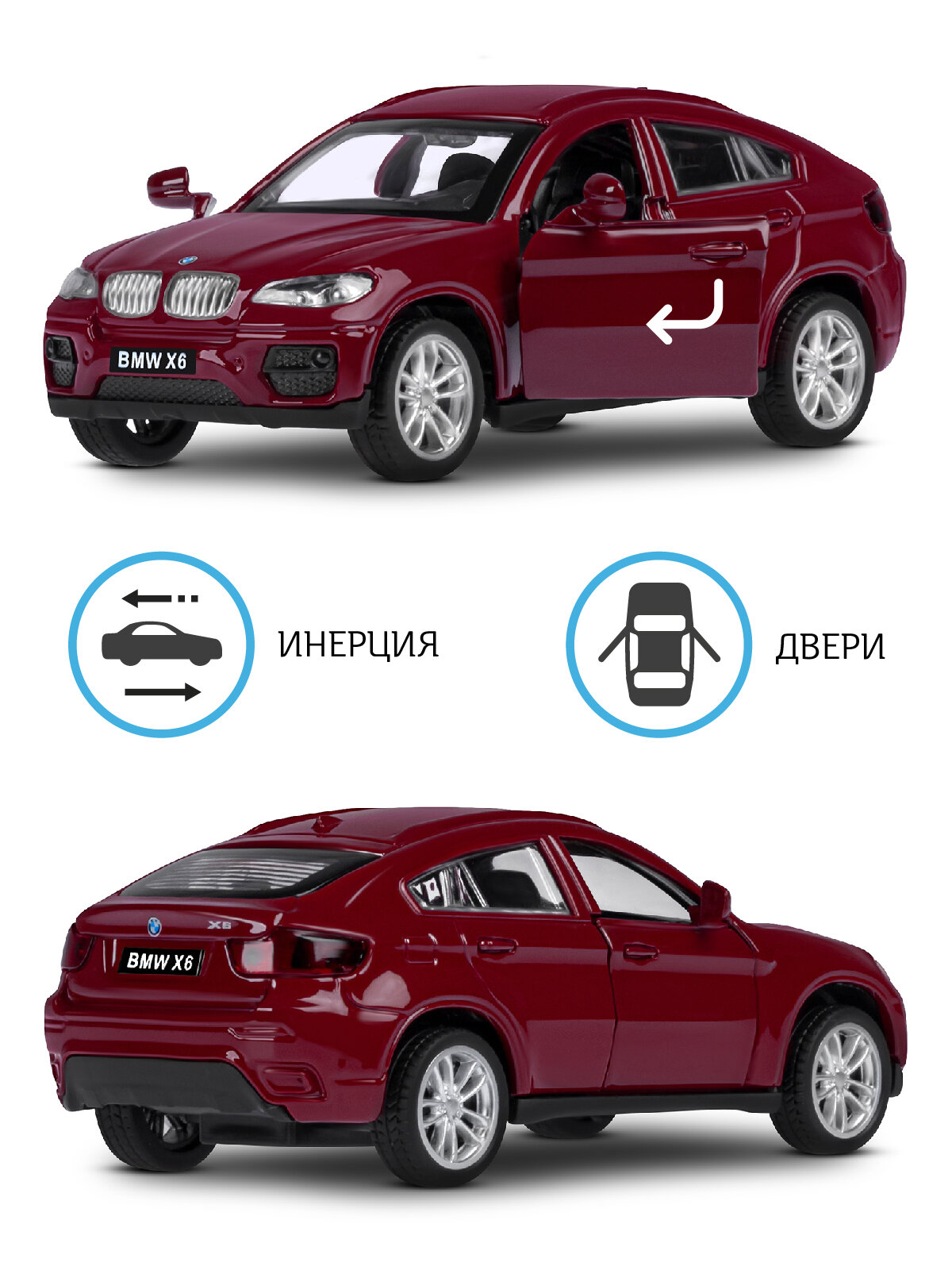 Купить Масштабная модель автопанорама JB1251252 BMW X6, 1:43, красный