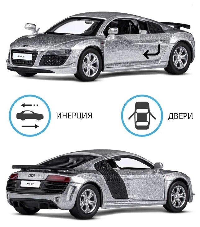 Купить Машинка металлическая ТМ "Автопанорама" 1:43 Audi R8 GT, серебро, инерция, откр. двери