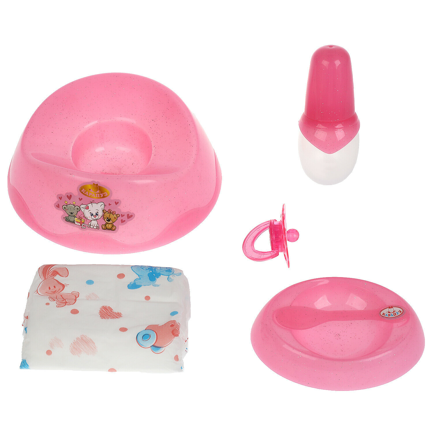| Комплектация | горшок; соска; бутылочка; подгузник. |
