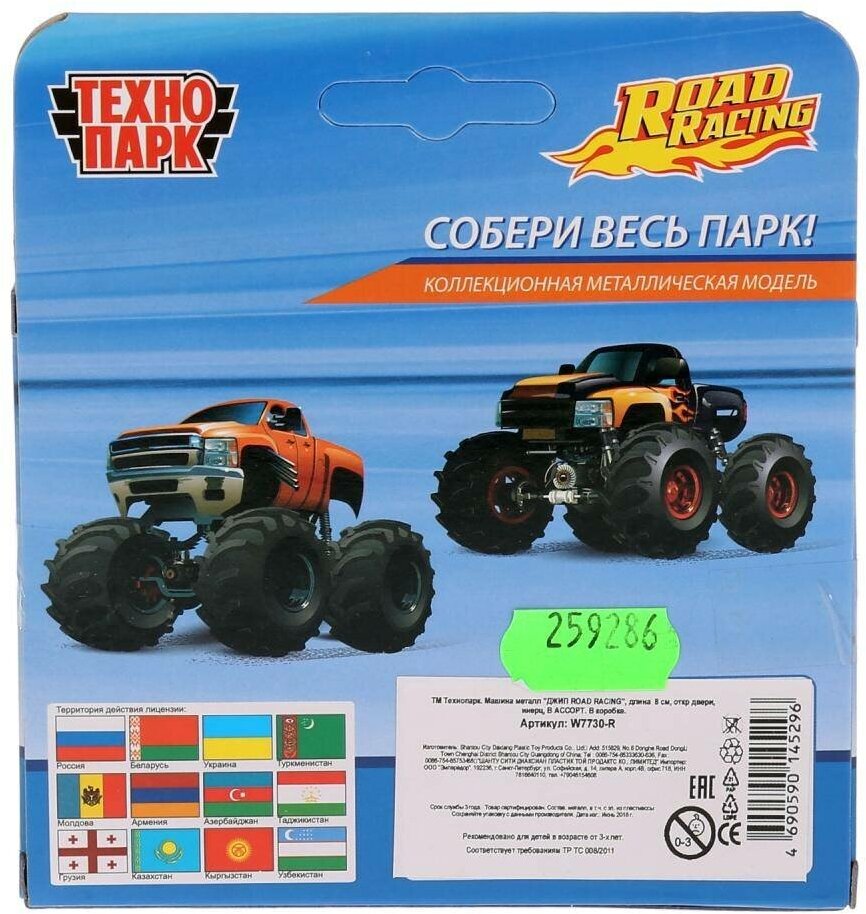 Купить ТМ Технопарк. Машина металл "монстр джип" 8см, открыв. двери, инерц