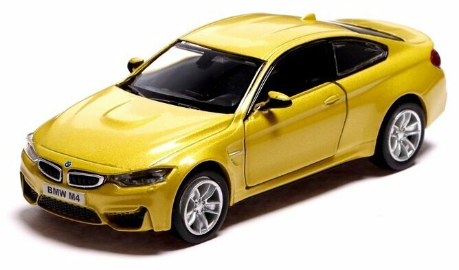 Машина BMW M4 COUPE инерционная, открываются двери, металлическая коллекционная модель, игрушечный транспорт, цвет жёлтый