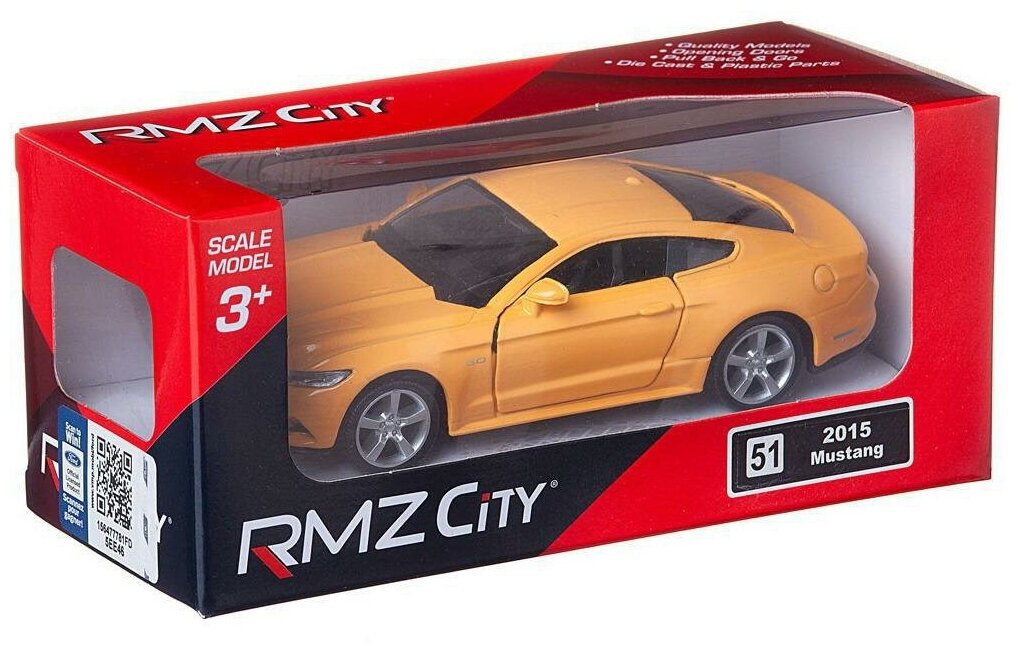 Машинка металлическая Uni-Fortune RMZ City 1:32 Ford Mustang 2015 инерционная, (желтый), 12,7х5,08х3,75 см