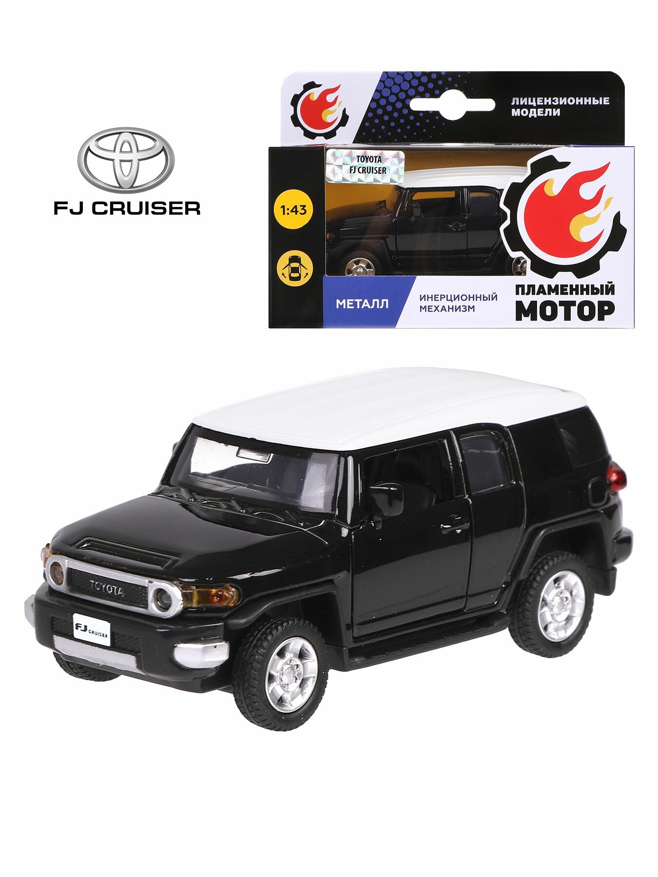 Машина мет. Пламенный мотор 1:43 Toyota FJ Cruiser, откр. двери, черный, 12см