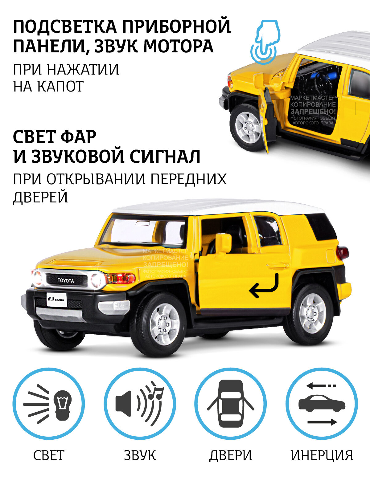 Машинка металлическая Toyota FJ Cruiser,желтый, 1:32, свет, звук, инерция, - JB1251389