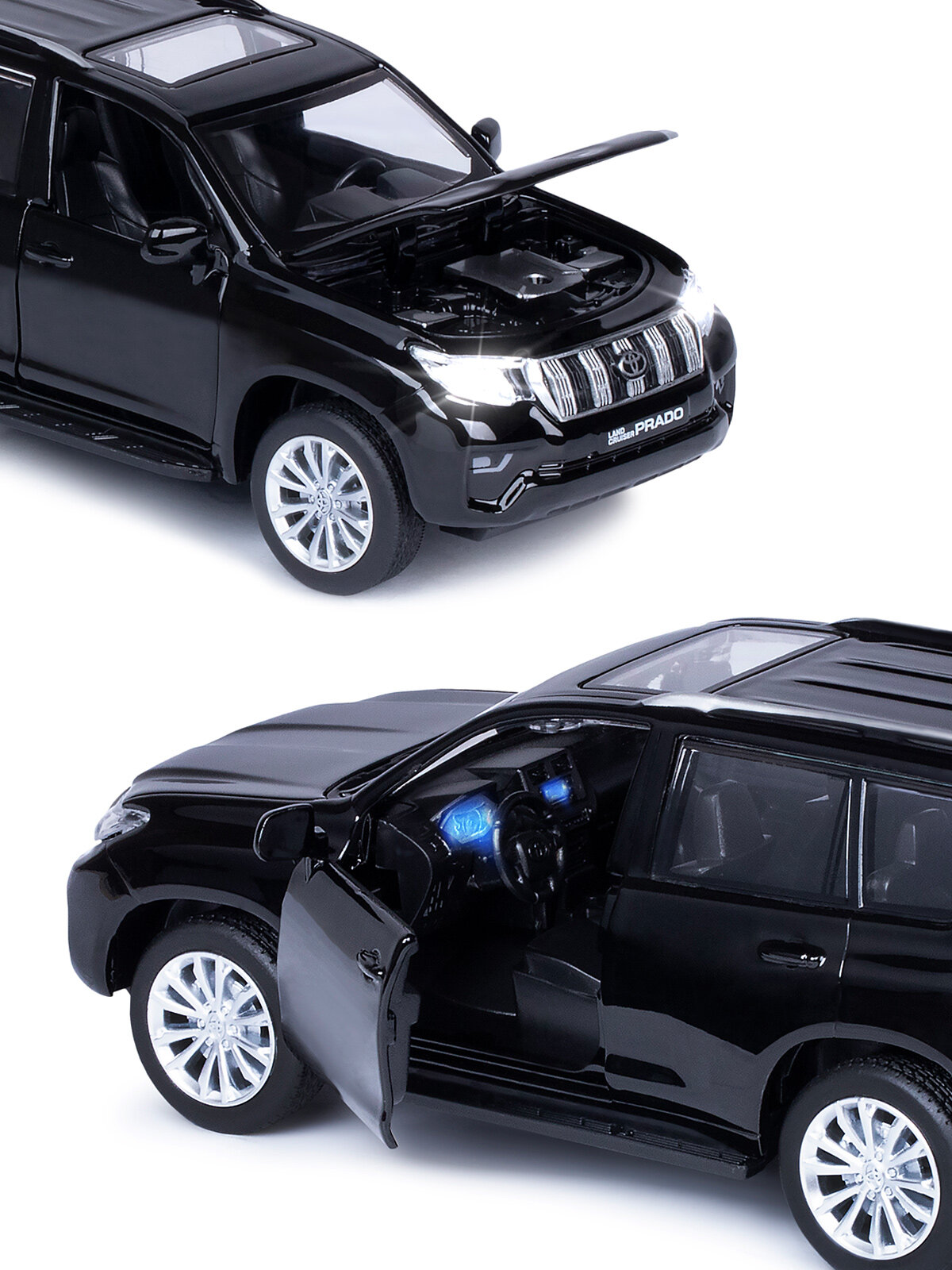 Машинка металлическая ТМ "Автопанорама", 1:32 Land Cruiser Prado, черный, инерция, свет, звук, открывающиеся двери