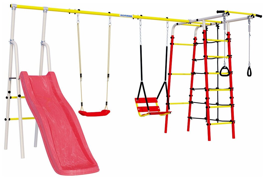 Купить Детский спортивный комплекс ROMANA Богатырь Плюс - 2 для двоих детей для дачи или частного дома с цепными и пластиковыми качелями